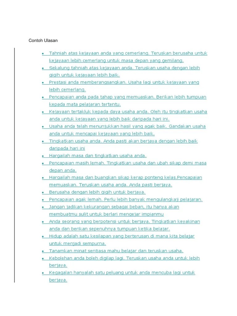 Contoh ulasan guru dalam keputusan penilaian/ peperiksaan.